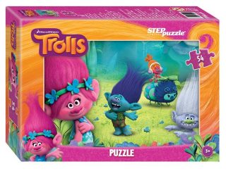 средние детали пазла (2 ? 1,8 см),размер собранного изображения - 18 ? 13 см.Пазл 54 эл Trolls создан по мотивам мультфильма о веселых Троллях (DreamWorks).