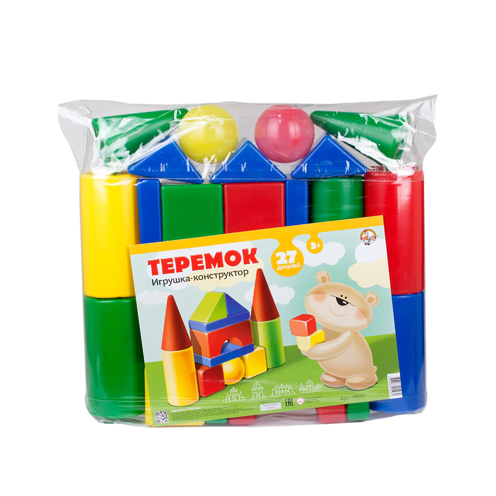 Игрушка-конструктор "Теремок" включает 27 элементов разной формы и цвета. Из них ребёнок может построить всё, что ему подскажет фантазия - это может быть домик, замок, крепость, гараж для машинок и многое другое.