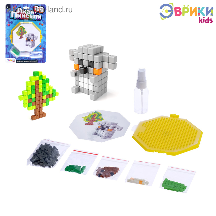 С аквамозаикой от торговой марки «Эврики» ребёнок соберёт объёмную фигурку из кубиков-пикселей. Детали плотно скрепляются друг с другом. С поделкой можно играть или носить с собой как брелок.