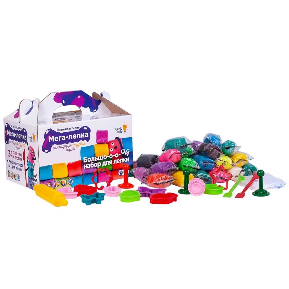 Набор уникального материала для детского творчества "Мега лепка" включает 17 ярких цветов воздушного пластилина, очень лёгкого, податливого и приятного на ощупь (всего 34 пакетика с пластилином, по 2 каждого цвета). Из него можно слепить всё, что подскажет маленькому творцу фантазия! В комплекте прилагаются вспомогательные приспособления: 10 формочек, 4 штампика, 2 стек-ножа, 1 скалка и 10 пакетиков для хранения теста-пластилина.