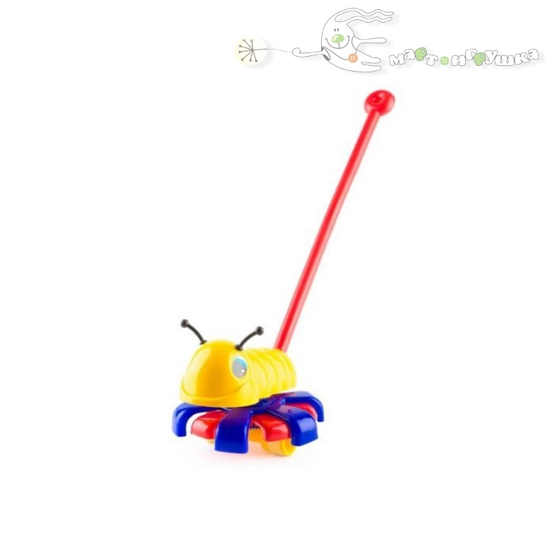 Ярко-желтая каталка «Гусеница» имеет длинную удобную ручку, с помощью которой малыш будет с удовольствием передвигать гусеницу по асфальту или по полу. Каталка изготовлена из безопасных для вашего ребенка гипоаллергенных материалов — пластика и красителей.