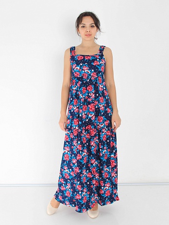 Сарафан женский, выполнен из набивного полотна, длинный, завышинная талия и два больших валана. Женственная модель. Рост модели 173 см.Маломерит.Без выбора расцветки.