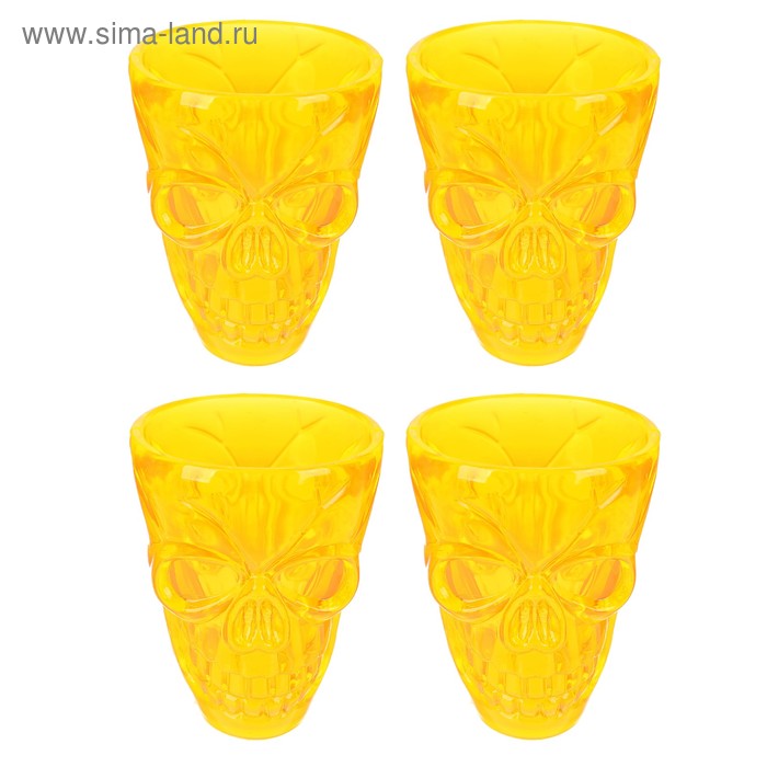 Стопка «Череп», набор 4 шт., цвет оранжевый