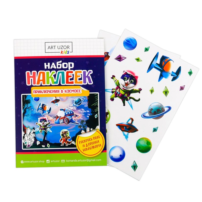 Набор наклеек с раскраской «Приключения в космосе», 14.5 × 21 см