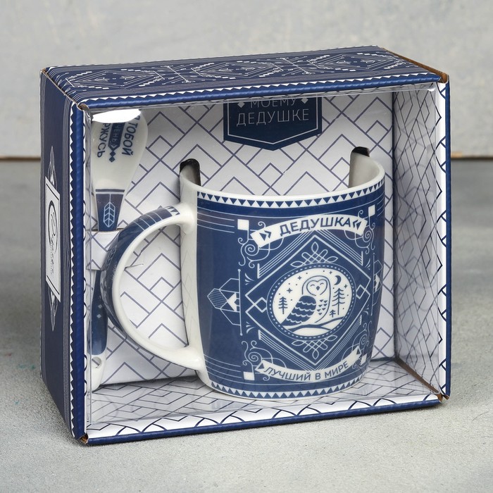 Кружка с ложкой «Лучший в мире дедушка», 350 мл