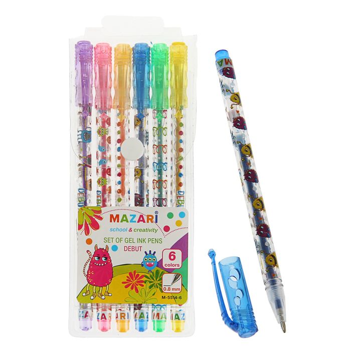 Набор гелевых ручек 6 цветов Debut, блестки, узел 0.8 мм