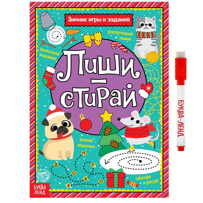 Многоразовая книга с маркером «Пиши-стирай. Зимние игры и задания», 12 стр.