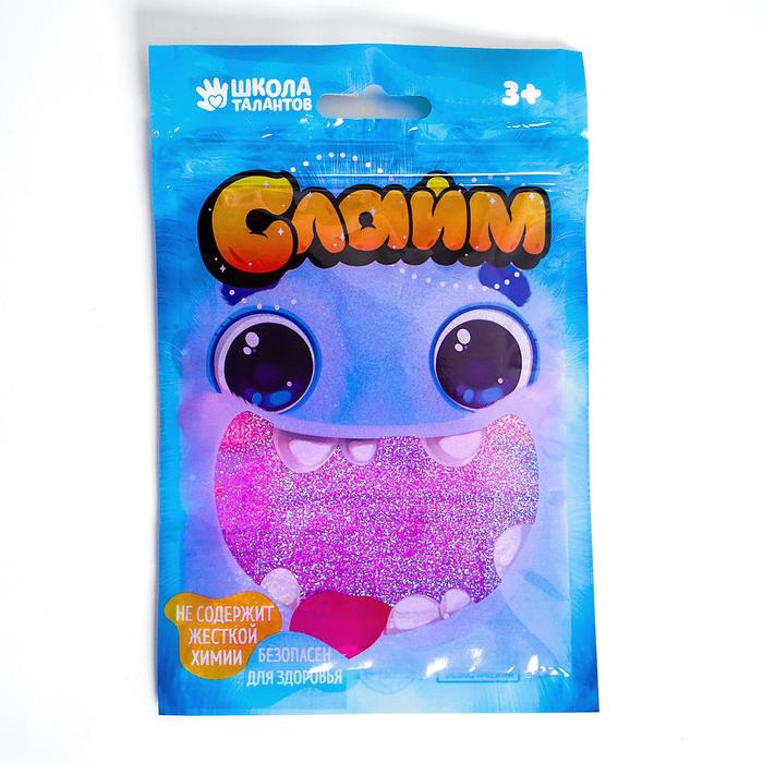 Слайм СТЕКЛО с малиновыми блёстками, 100 г в дой-паке