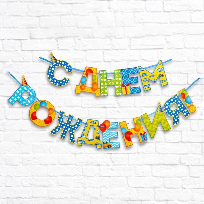Гирлянда на ленте «С Днём Рождения!", мальчику, дл. 250 см