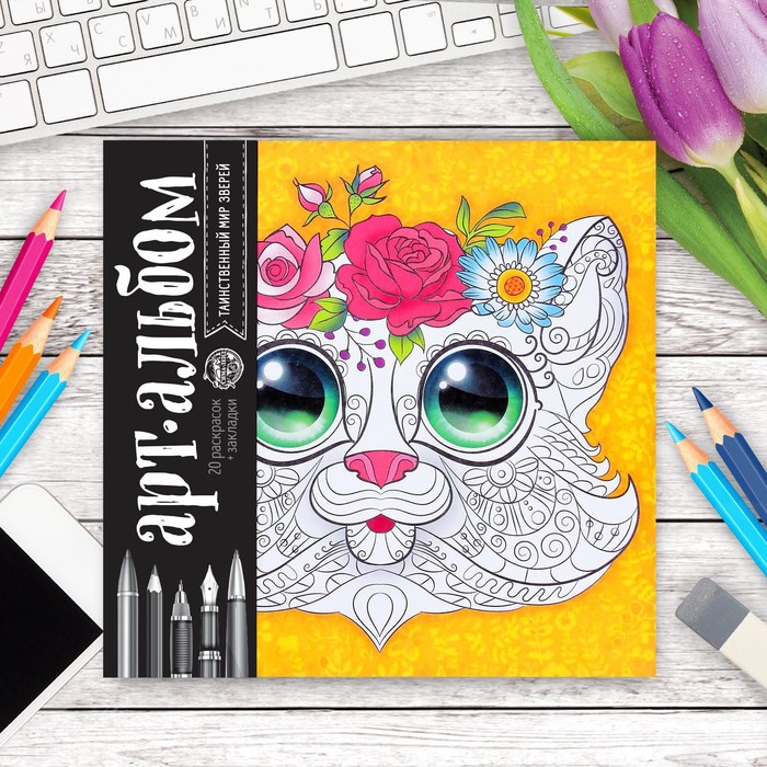 Раскраска антистресс, альбом "Таинственный мир зверей" 20 стр.