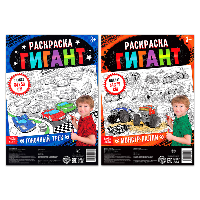 Набор раскрасок гигантов «Для юного гонщика», 2 шт