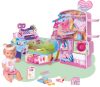 В наборе, помимо самого пупса есть - шкафчик-витрина, прилавок, кассовый аппарат (со звуковыми и световыми эффектами).